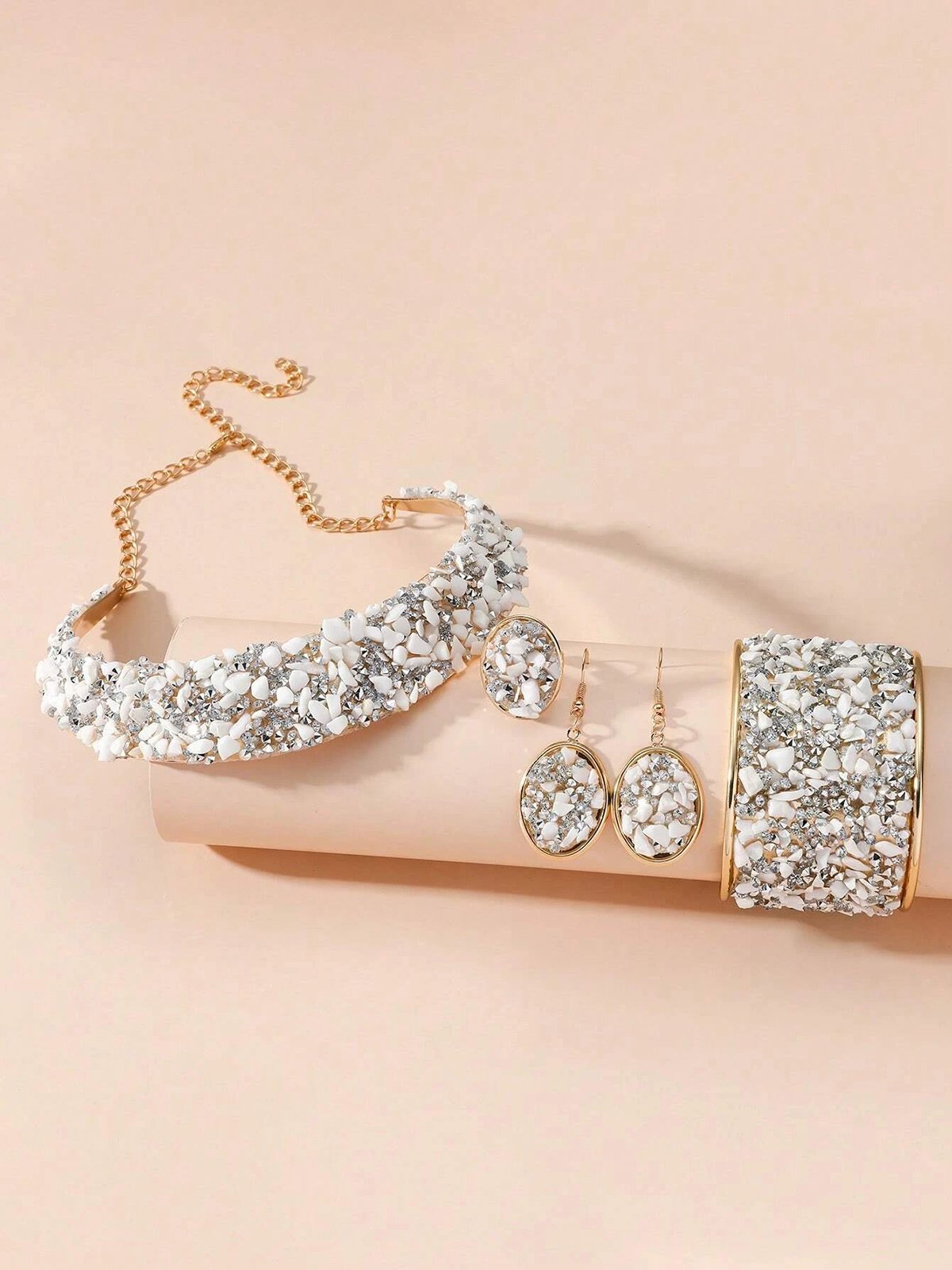 4pcs/set Luxurious Multicolor Rhinestone Embellished Metal Choker Necklace Set