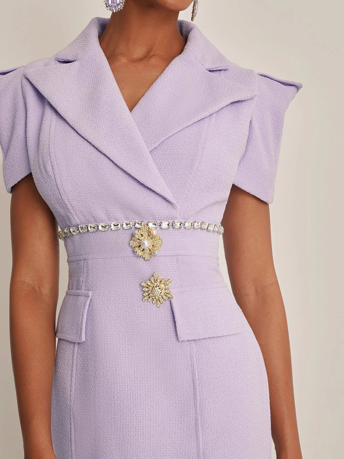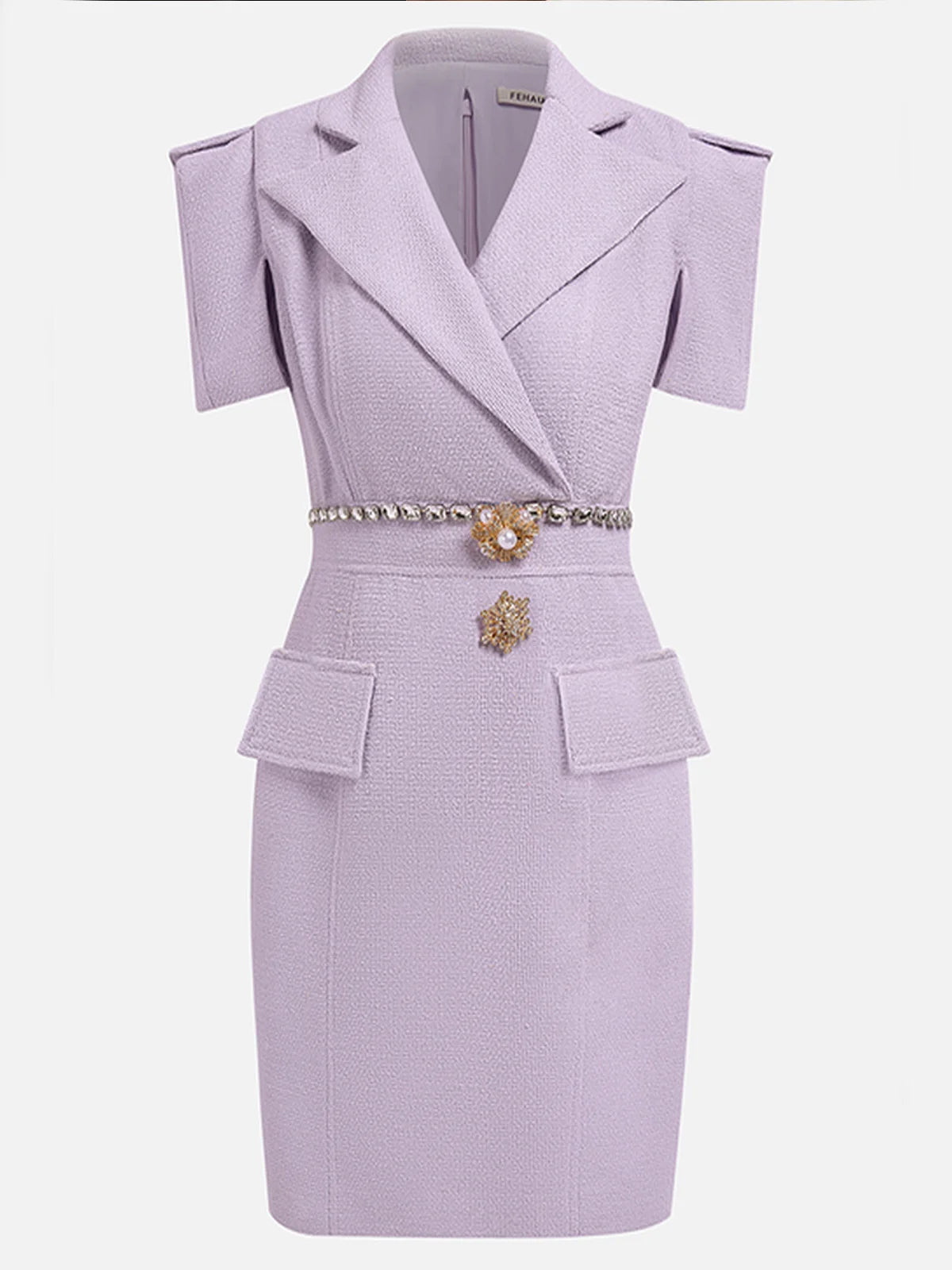 Lavender Purple Shawl Collar Short Sleeve Tweed Sheath Mini Homecoming Dress