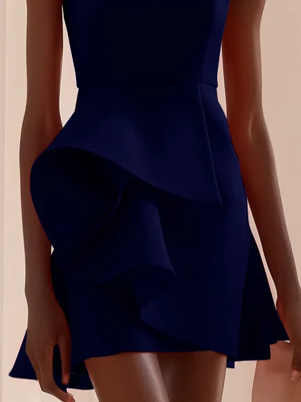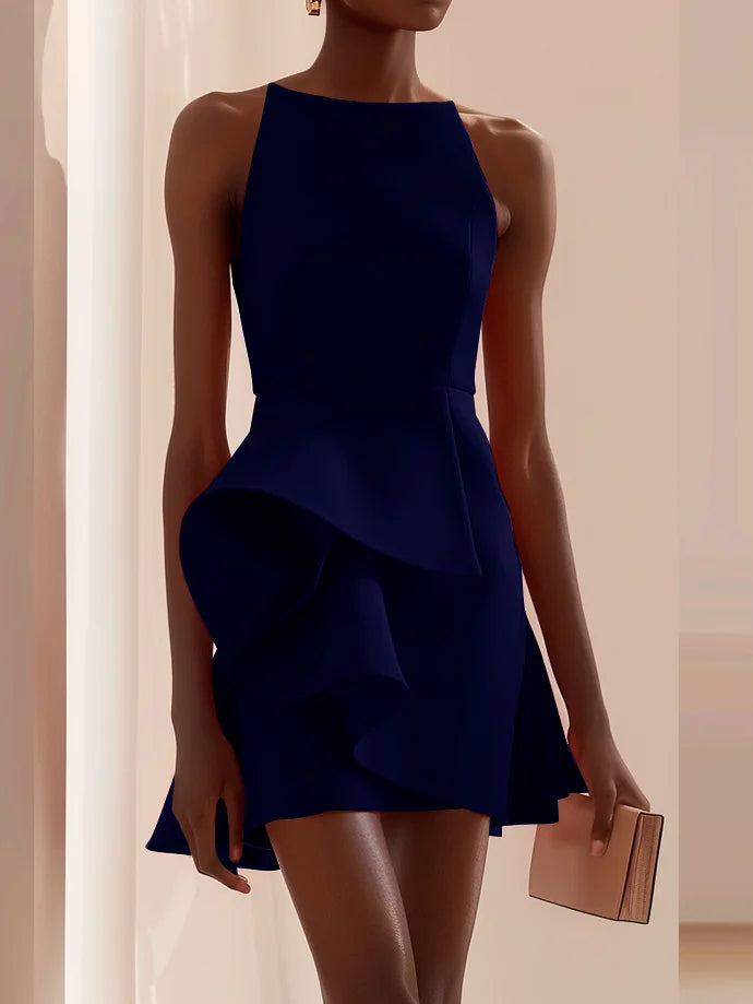 Navy Blue Ruched Sleeveless A-Line Mini Homecoming Dress