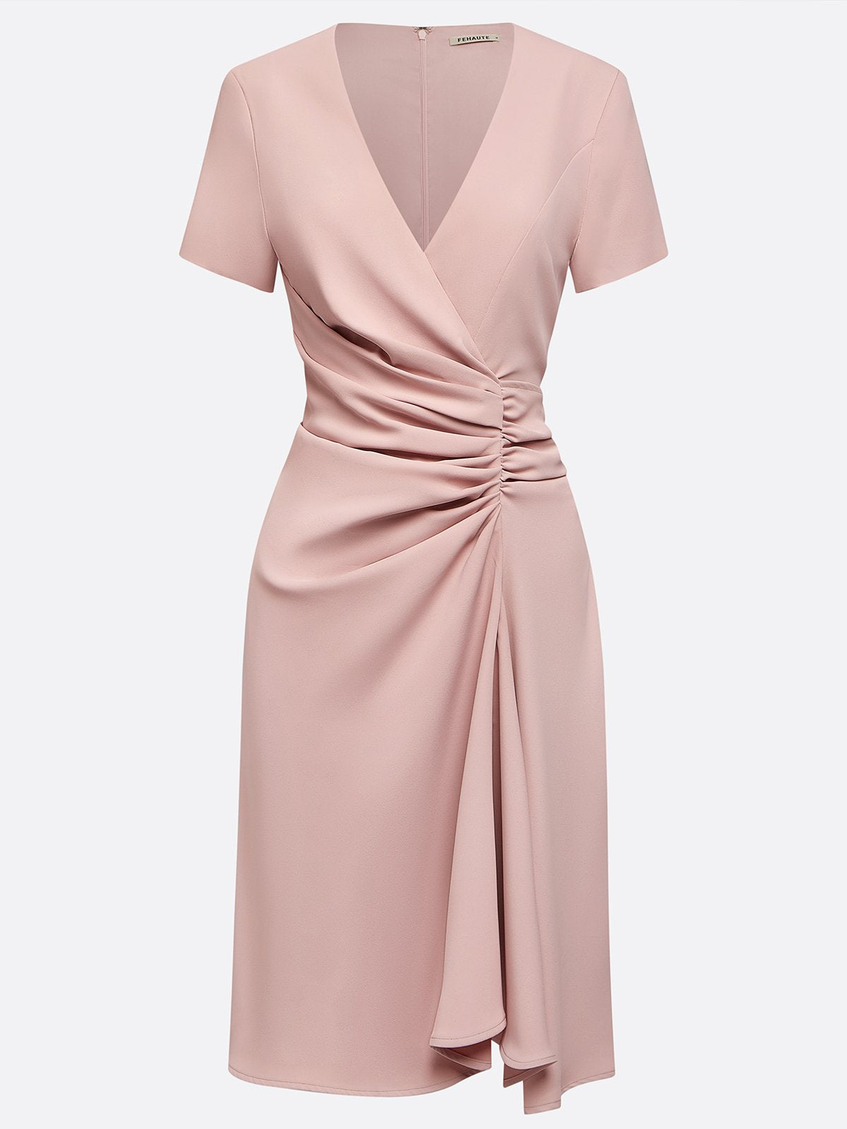 Pink Irregular Craftsmanship Ruched A-Line Short Sleeve Midi Dress