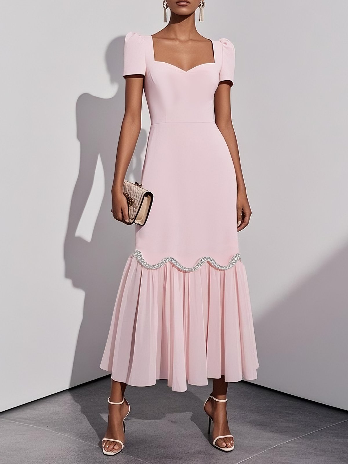 Pink Rhinestone Classic Sweetheart Neckline Sleeveless A-Line Maxi Dress