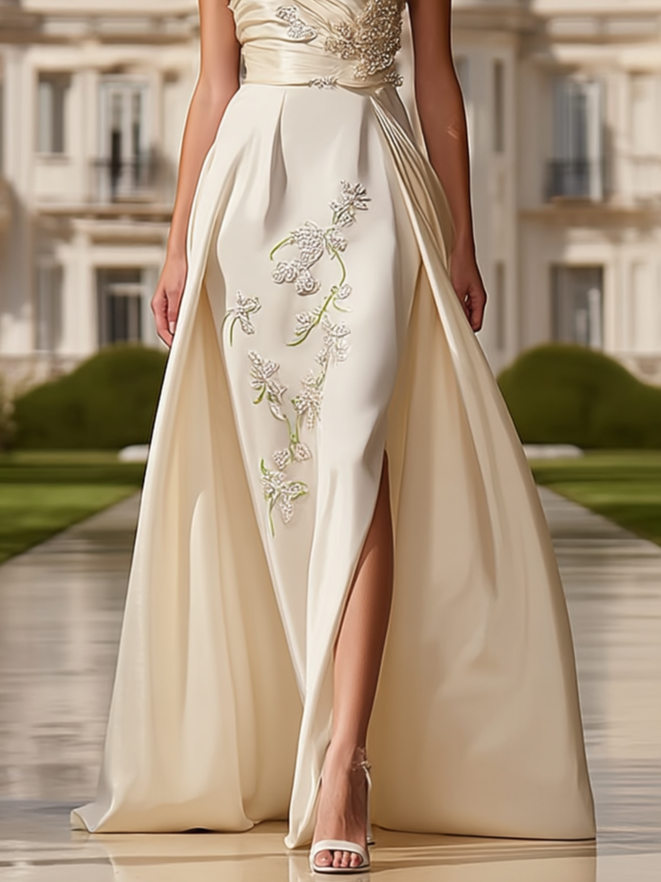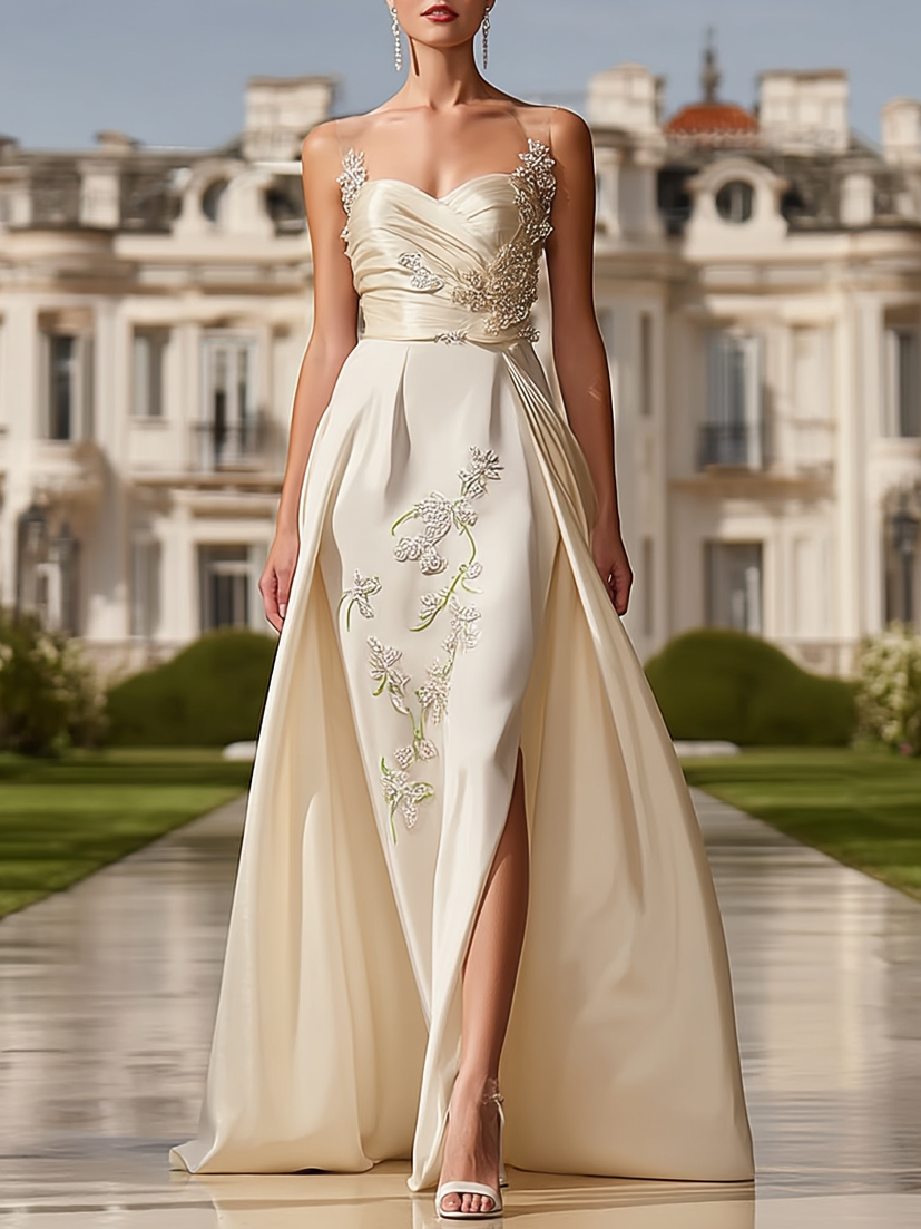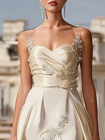 White Lace Embroidery Bridal/Wedding Dress Spaghetti Sleeveless A-Line Gown Dress